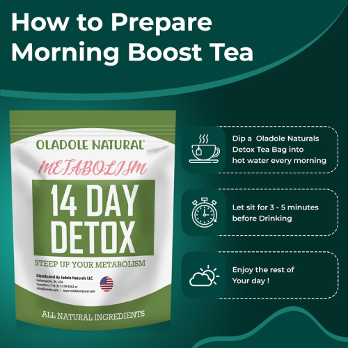Start your weight loss journey with Oladole Natural Metabolism Detox Tea, which has been particularly created to cleanse your body and assist you in achieving a flatter tummy. This delicate yet efficient tea, made with high-quality all-natural ingredients, eliminates toxins and excess water weight, leaving you feeling lighter and more energized. Unlike other detox teas, Oladole’s natural herb and spice blend will not make you feel jittery or agitated. This 14-day detox cleanses and metabolism booster is ideal for anyone searching for a gentle and pleasant method to kickstart their weight loss journey. It has a refreshing taste and the capacity to enhance energy levels, reduce stress, and support good digestion. Pour yourself a cup, sit back, and indulge in the ultimate self-care treat.