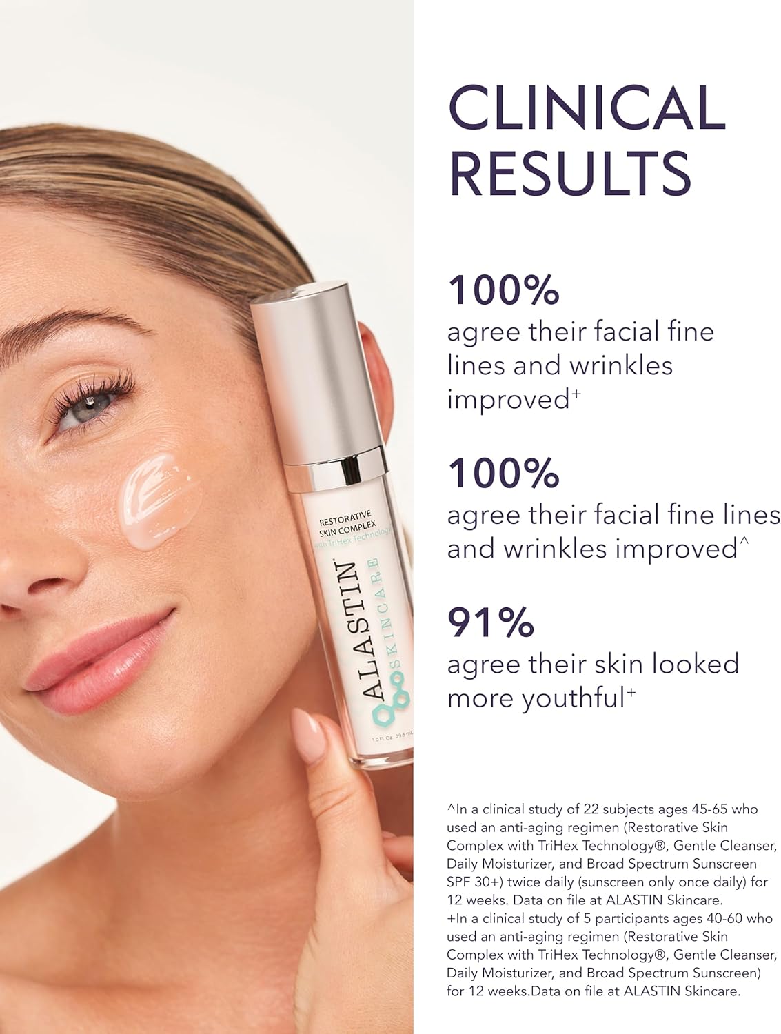 Alastin Skincare Restorative Skin Complex Facial Serum (1 oz) is a cutting-edge anti-aging treatment designed to restore skin health, firmness, and radiance. Formulated with Alastin’s proprietary TriHex Technology®, this advanced serum works by clearing out damaged collagen and elastin while supporting the skin’s natural ability to regenerate new, healthy fibers. It helps improve the appearance of fine lines and wrinkles, evens skin tone, and enhances skin texture for a smoother, more youthful complexion. The lightweight, fast-absorbing formula also contains antioxidants to protect against environmental damage, making it ideal for daily use. Suitable for all skin types, this serum is especially recommended for mature or post-procedure skin in need of renewal, hydration, and long-lasting rejuvenation.
