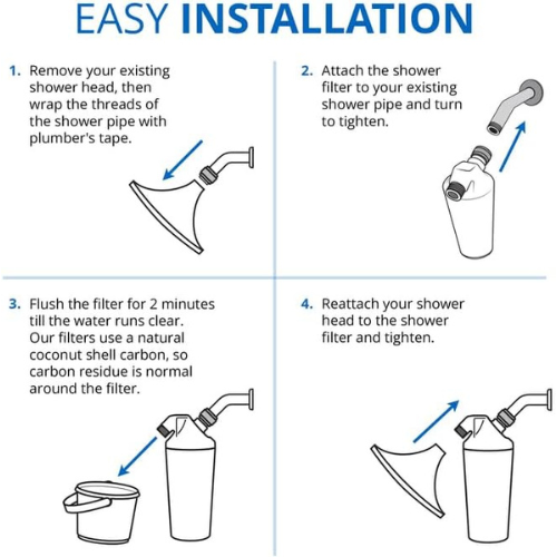 - Simple DIY Installation & Filter Replacement – Easily install showerhead in 4 simple steps. After installation run water for several minutes to flush carbon fines until water is clear. For optimal filtration, remove and replace filters every 6 months.
