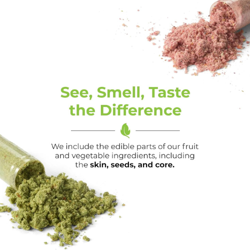 Broccoli, Cabbage, Carrot, Cauliflower, Cayenne Pepper, Celery Stalk, Garlic, Kale, Onion, Shiitake Mushroom, Soy Bean, Spinach, Sweet Potato, Wheat Grass, Zucchini, Aloe Vera, Apple, Banana, Blueberry, Cherry, Cranberry, Grape, Grapefruit, Lemon, Mango, Orange, Papaya, Pineapple, Raspberry, Strawberry, Tomato.