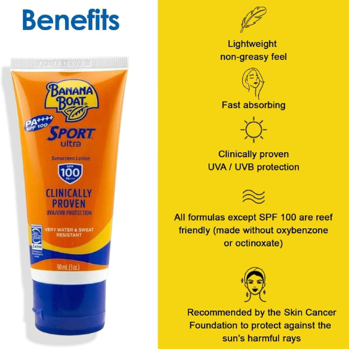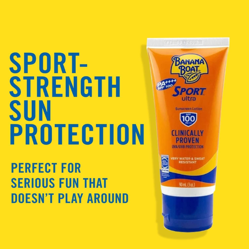 Banana Boat Sport Ultra Sunscreen Lotion-SPF100-UVA/UVB Protection-Clinically Proven- Very Water & Sweat Resistant-Lightweight-Non Greasy-Quick Absorption-Protection from Skinburn Damage-90ml