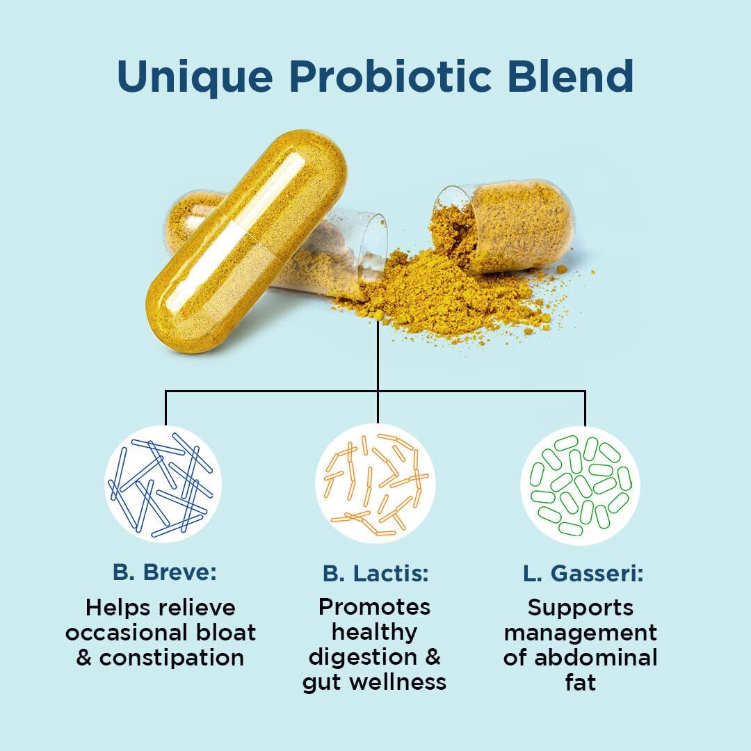 Weight Management Support: Helps reduce bloating and supports metabolism with a probiotic blend that may assist in managing stubborn weight gain, especially around the belly.