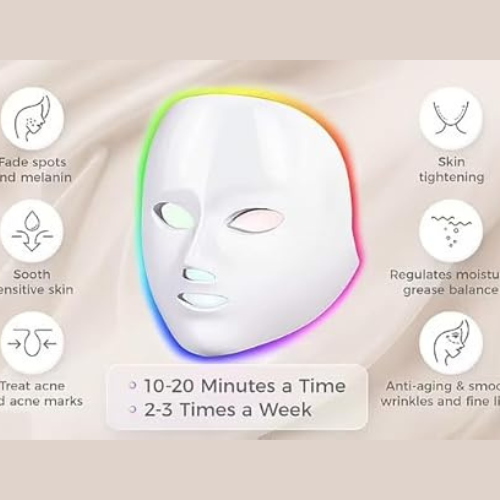 - 7 in 1 LED Mask: Red Light(630nm)-Increase Blood Circulation and Collagen Production, Whitening (effects for melasma); Blue Light(470nm)-Calms and Tightens Skin; Green Light(520nm)-Improve Pigmentation, inhibit The formation Of Melanin Pigment, Reduce Wrinkle and Fine Lines, Anti-Aging; Yellow Light(590nm)-Smooth Skin and Reduces Redness; Purple Light(390nm)-Relaxing, Improves Lymph Metabolism – Cyanine Light(415nm-520nm)-Soothing, Can Help Allergies; NEW White Light- Accelerate Tissue Metabol.