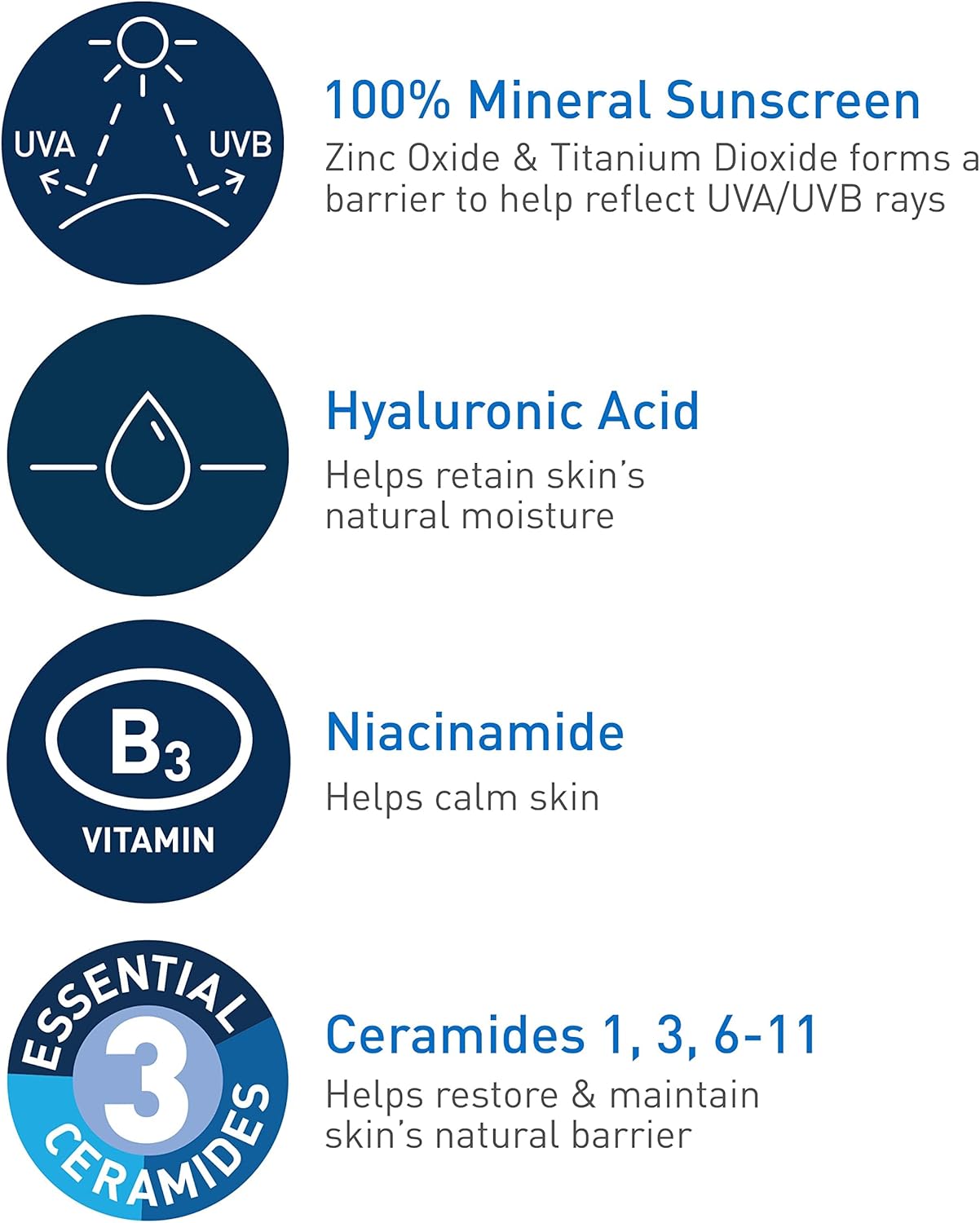 CeraVe 100% Mineral Sunscreen SPF 50 | Face Sunscreen with Zinc Oxide & Titanium Dioxide for Sensitive Skin | 2.5 oz, 1 Pack (Packaging May Vary)