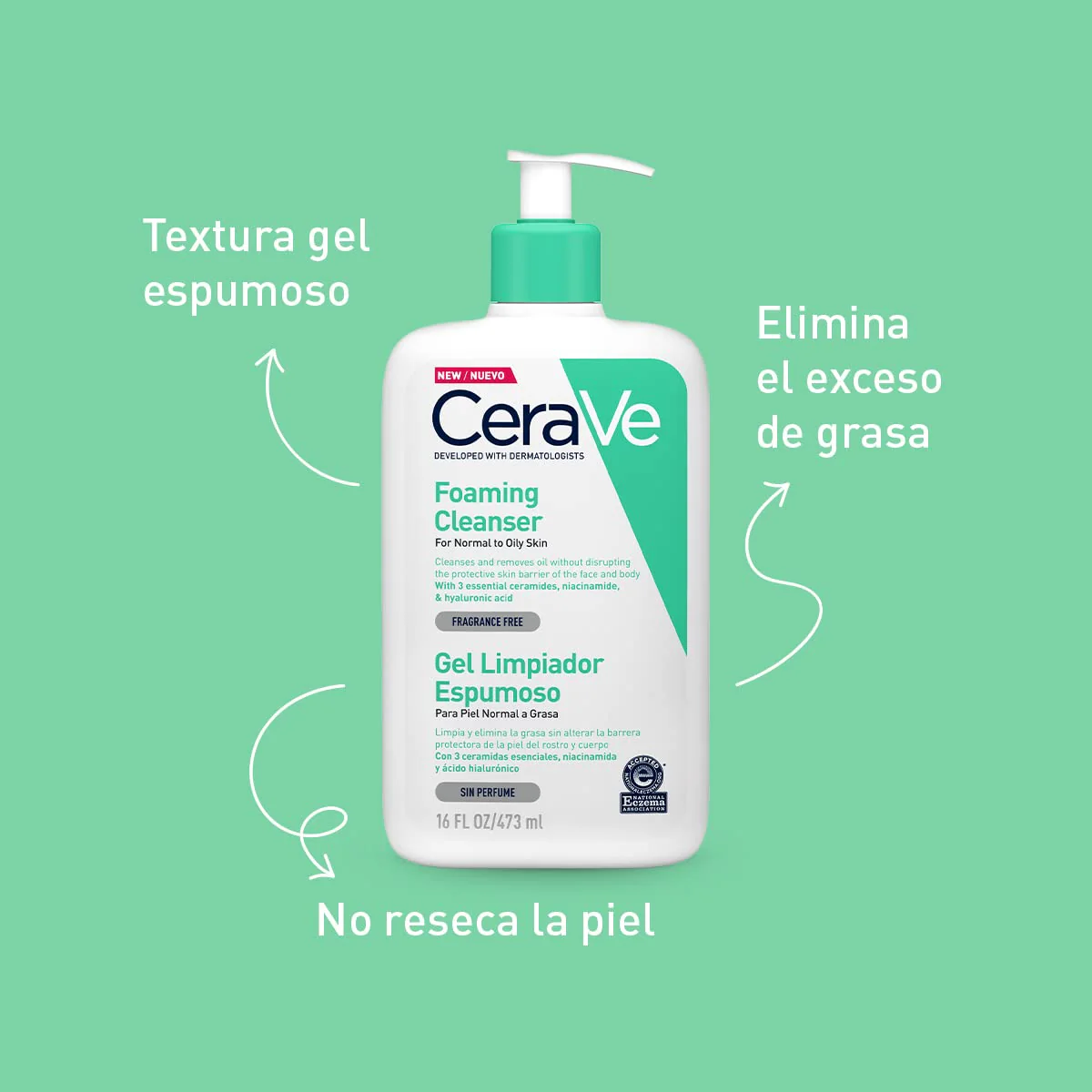 CeraVe Foaming Cleanser | Face and Body Wash for Normal to Oily Skin with Hyaluronic Acid, Niacinamide and Ceramides| Fragrance Free Paraben Free | 16Oz, 473 ML