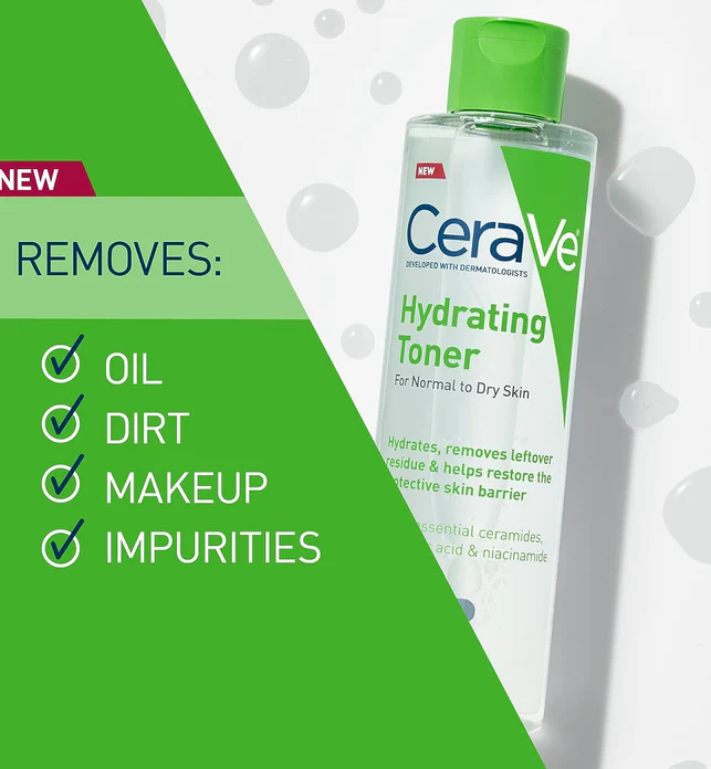 - [HYALURONIC ACID & NIACINAMIDE TONER] pH balanced toner gently removes impurities after cleansing. With ceramides, hyaluronic acid, and niacinamide the lightweight toner helps soften and smooth skin while locking in moisture for refreshed, healthy-looking skin.