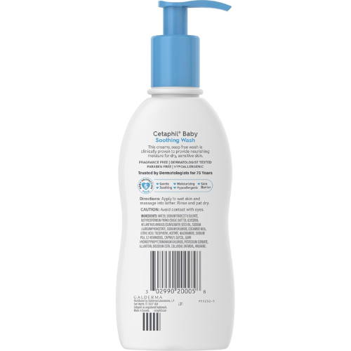 Cetaphil Baby Body Wash, Soothing Wash, Creamy & Gentle for Sensitive Dry Skin, Made with Colloidal Oatmeal and Niacinamide, Fragrance Free, Hypoallergenic, 5oz