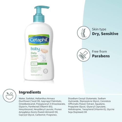Cetaphil Baby Daily Lotion With Organic Calendula |Vitamin E | Sweet Almond & Sunflower Oils |13.5 Fl. Oz