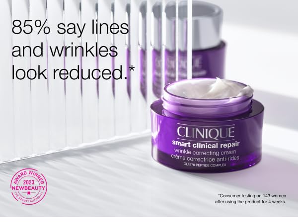 Clinique Smart Clinical Repair Wrinkle Correcting Rich Cream is an ultra-nourishing anti-aging daily face moisturizer that visibly reduces 3 dimensions of wrinkles: wrinkle count, wrinkle length, and wrinkle area. Powered by a peptide-rich technology, this anti-wrinkle face cream helps strengthen skin and visibly repair lines and wrinkles. Hyaluronic acid instantly hydrates and plumps skin, helping minimize the look of fine, dry lines. Soybean seed extract, another key ingredient, is rich in lysophosphatidic acid (LPA), which nourishes to help fortify skin. Skin is smoother and younger-looking. Our Wrinkle Correcting Rich Cream is a luxe, dense wrinkle cream for face for those with drier skin. Clinique Smart Clinical Repair Wrinkle Correcting Cream is also available in a lightweight formula for all skin types. Clinique Smart Clinical Repair anti-aging formulas are clinically proven to get results. From a retinoid-powered serum to a genius SPF cream, this powerhouse collection has everything you need to build an effective wrinkle-fighting routine.
