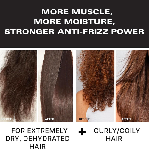 Powerful, ultra-moisturising, anti-frizz treatment keeps dry/dehydrated hair and coily/curly hair glassy-smooth, straight and frizz-resistant through 3-4 shampoos.