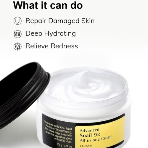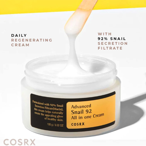 Its Combo of 2Pcs Advance Snail 92 All In One Cream 100ml (2 Pack); A rich, lightweight gel-type cream with 92% of snail mucin gives skin nourishment and moisture without oiliness while leaving your skin feeling fresh and comfortable.