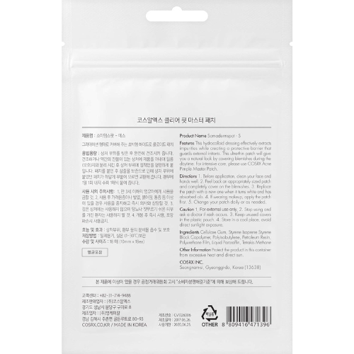 Usage: Clean and dry the affected area before applying the patch. Gently press the patch onto the blemish, ensuring it adheres well. Leave on for several hours or overnight, then remove and discard. Use as needed.