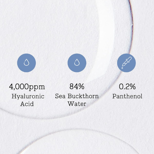 Hippophae Rhamnoides Water, Butylene Glycol, Glycerin, 1,2-Hexanediol, Sodium Hyaluronate, Panthenol, Ethyl Hexanediol