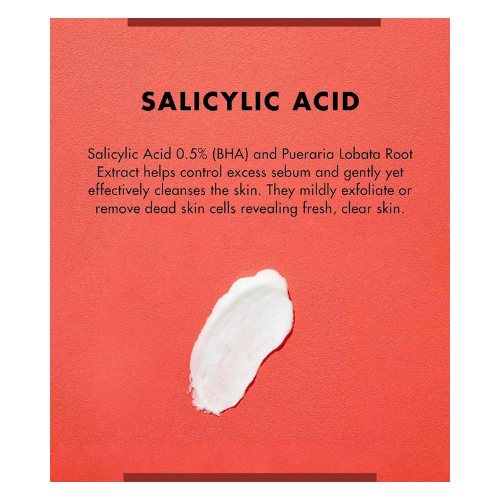 Salicylic Acid 0.5% (BHA) and Pueraria Lobata Root Extract helps control excess sebum and gently yet effectively cleanses the skin. They mildly exfoliate or remove dead skin cells revealing fresh, clear skin.