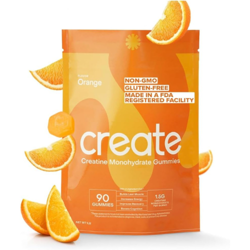 Create Creatine Monohydrate Gummies for Men & Women, Boost Focus, Strength, and Endurance, Anti-Melting Formula, Vegan, Gluten-Free, Non-GMO, 1.5g of Creatine per Gummy (Orange, 90ct)
