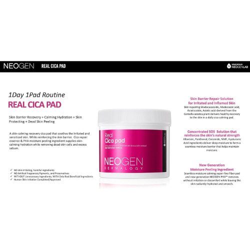 DERMALOGY by NEOGENLAB NEOGEN REAL CICA PAD (90 pads/150ml) 4 in 1 pad for best skin care