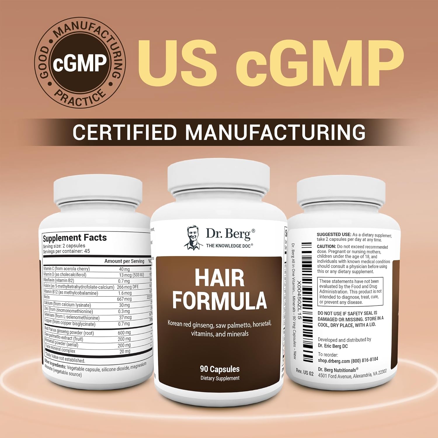 Dr. Berg All in One Hair Vitamins for Men & Women – Advanced Hair Formula Includes Biotin, Saw Palmetto, DHT Blocker & Trace Minerals – Hair Supplement for Hair, Skin & Nails – 90 Veg Capsules