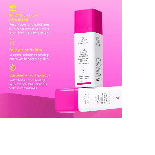 Drunk Elephant T.L.C. Framboos Glycolic Night Serum – Skin Care Brightening Night Serum. Repackaging (50 mL / 1.69 Fl Oz)
