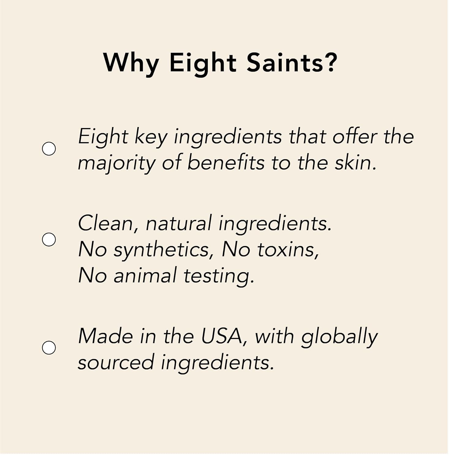 - We’re all about providing truth and clarity in natural, effective skincare. In a crowded market with over-hyped “miracle ingredients”, we found most ingredients don’t produce results. We drilled down to 8 key ingredients that generated the majority of the benefits for your skin: Our “Eight Saints”.
