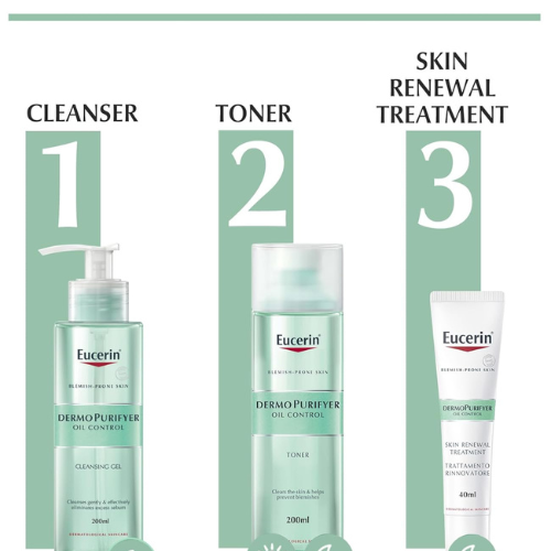 Don’t let skin impurity stop you from getting a healthy-looking skin. Eucerin’s DermoPurifyer is a range of effective dermo cosmetic solutions for impure skin. Its products are designed to address four key factors pertaining impure skin: disrupted skin cell shedding, increased sebum production, increased bacteria proliferation and inflammation of the skin. Eucerin DermoPurifyer Oil Control Facial Toner for Blemish and Acne-Prone Skin is formulated to deliver thoroughly cleansed and clarified skin without drying it out. The toner’s active antibacterial formula contains 2% Lactic Acid, which unblocks pores, inhibits bacterial growth and prevents all types of blemishes, all while ensuring your skin is not dried out in the process. It focuses on problematic areas, such as the T-zone and thoroughly cleanses it to remove excess oil and reveal beautifully smooth and clear skin. Eucerin’s DermoPurifyer Toner for acne prone skin is formulated, dermatologically and clinically proven to show effectiveness for people with blemish-prone skin. It is also suitable for those with mild to moderate adult acne. It can help tackle all other forms of acnes, such as acne vulgaris. It can be used during pregnancy but should not be used by skin undergoing a medical acne treatment. The toner helps clear skin to prep it for subsequent care.