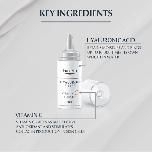 Eucerin Hyaluron Filler Anti-Aging Face Serum Vitamin C Booster with Hyaluronic Acid, Plumps up Deep Wrinkles, For Fresh and Radiant Skin, Suitable for All Skin Types, 8ml