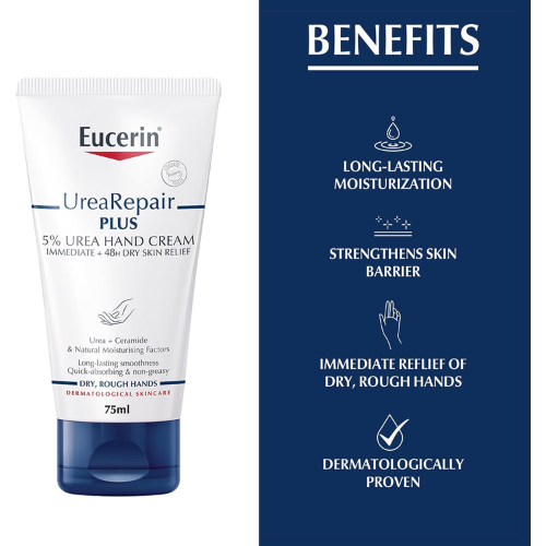Eucerin UreaRepair Plus 5% Urea Hand Cream with Ceramides, Daily Moisture, Suitable for Mature & Diabetic, Instant 48-Hour Relief for Dry & Rough Skin, 75ml