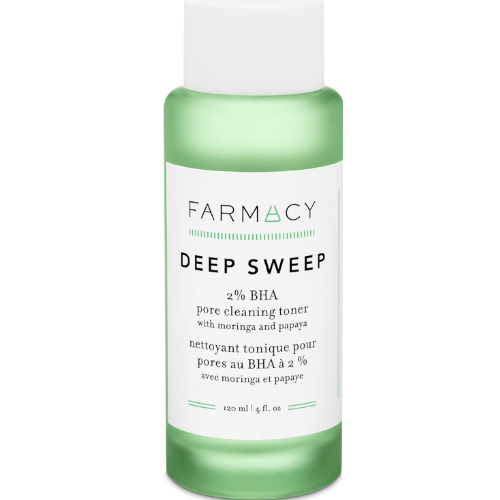 About the Toner If you’ve tried other toners that left your face feeling dry or irritated, Deep Sweep might be for you! Deep Sweep is an alcohol-free, 2% BHA toner that gently exfoliates, deep cleans pores and controls oil without over-stripping skin. Ideal for combination, oily or acne-prone skin. [120 ml / 4.0 fl oz The water-light formula draws out excess oil to help reduce shine without over-stripping skin. Nutrient-dense moringa helps keep skin and pores clean, while antioxidant-rich chlorella nourishes and soothes. About Farmacy Farmer Cultivated & Scientist Activated. We use cutting-edge science to harness the healing powers of ingredients found in nature. The result is farm-to-face skincare that lives up to its full potency and potential through clean, thoughtful formulas.