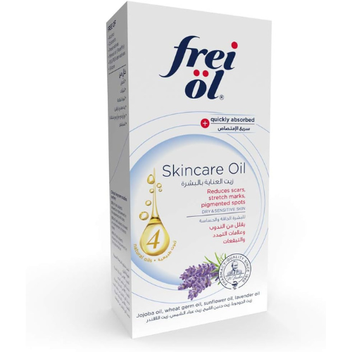 Skincare Oil the number 1. Effective against scars, stretch marks & pigmentation spots. Regular care with frei öl Skincare Oil makes the skin feel soft and delicate all over the body. The oil is absorbed quickly and gives a supple skin feeling. With calming lavender scent.