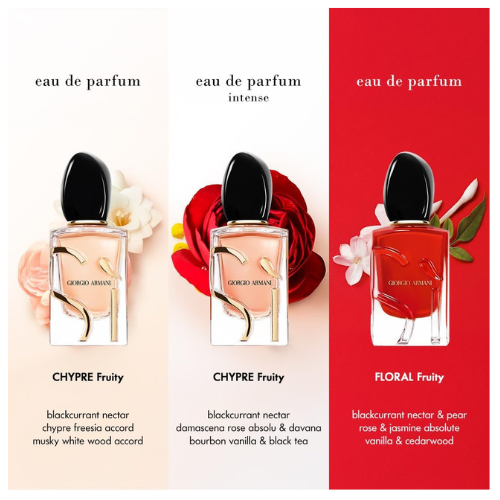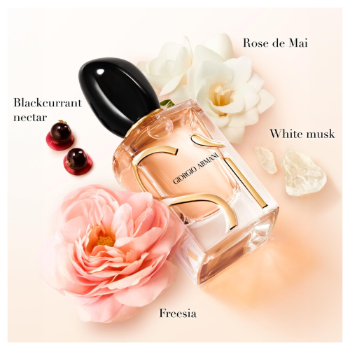 At once chic, voluptuous, intense, and soft, Sì eau de parfum lingers on the skin and enchants the senses. The distinguished and elegant fragrance allows women to express their every emotion. Sì has a top note of blackcurrant nectar, a heart of freesia and Rose of Mai, with a musky blond wood base. This fragrances created for the modern woman who’s strong yet feminine, sophisticated yet charismatic. She embodies the very essence of chic Italian elegance and style.