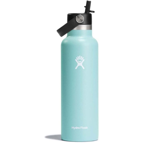 HYDRO FLASK – Water Bottle 621 ml (21 oz) – Vacuum Insulated Stainless Steel Water Bottle with Flex Straw Cap – BPA-Free – Standard Mouth – Dew
