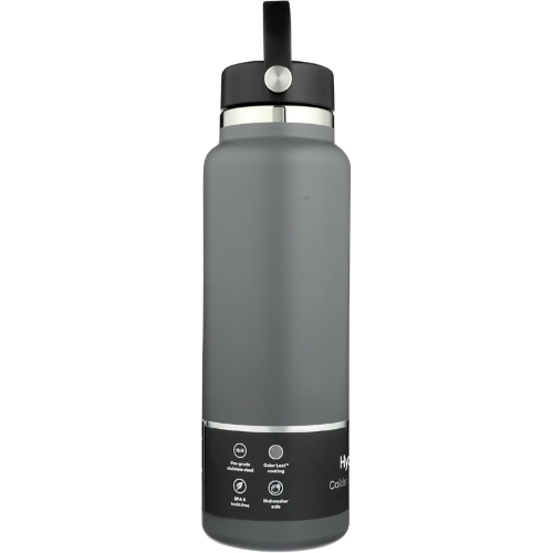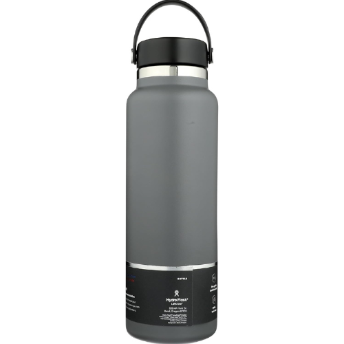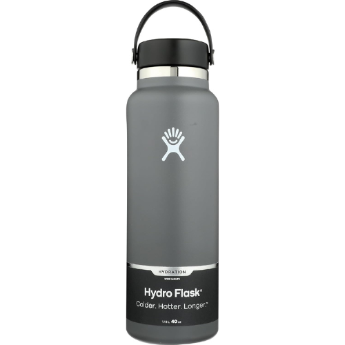 A new look for the new decade. Redesigned Wide Mouth Hydro Flasks feature sleek stainless steel collars, to match the look of the standard mouth necks. Don’t be afraid to send your water bottle through the dishwasher, new Hydro Flask bottles are now dishwasher safe with the new powder coating. Take this insulated water bottle with you to the gym, the office, or in your camping gear, it’ll keep cold liquids chilled for up to 24 hours and hot liquids hot for up to 12 hours. It’s large enough to hold water for the day, yet it fits easily into a backpack or side pocket. This metal water bottle is made with 18/8 stainless steel to keep your favorite drinks from leaving any leftover flavors or odors. Wherever you take this stainless steel water bottle, count on Hydro Flask’s Flex Lid to keep your contents safe from spills and leakage. The Flex Lid has a water bottle handle on it, so you can carry it easily with one hand. Count on Hydro Flask for hydration on any adventure. This leak-proof water bottle is backed by a manufacturer’s lifetime warranty.