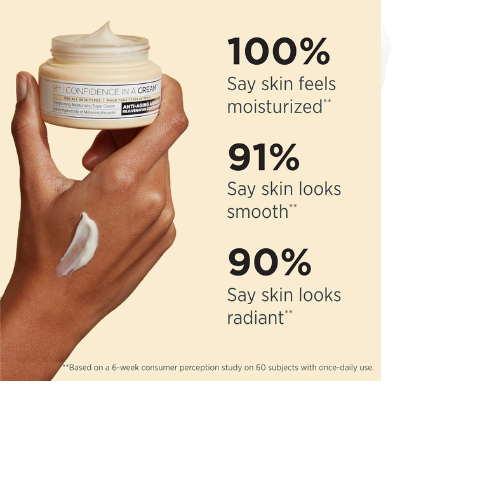 For best results, apply to clean skin in the morning and evening. Using upward sweeping motions, smooth gently onto face, neck, décolleté and anywhere your skin needs moisture and rejuvenation. Beauty Tip: Use Confidence in a Cream to make your makeup last longer, and give your skin a more supple appearance! The ultra-moisturizing, quick-absorbing formula won’t pill under your makeup, and will help your favorite foundation, powder, highlighter and blush glide on evenly for all-day wear!