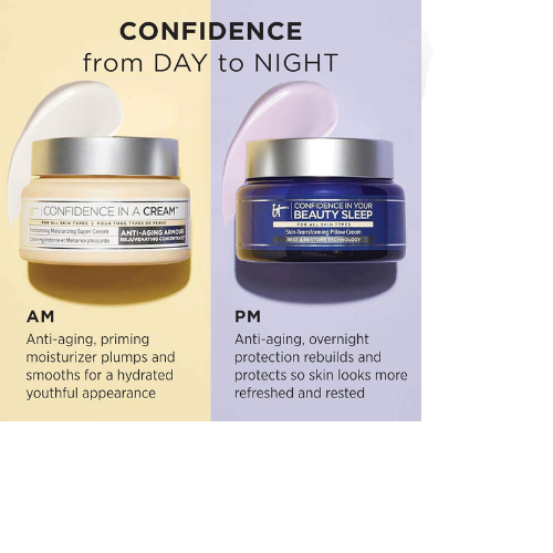 Great skin starts with confidence! Perfect for all skin types, even the most sensitive, IT Cosmetics Confidence in a Cream deeply hydrates, restores radiance and reduces the look of pores, uneven texture and discoloration. Proprietary Anti-Aging Armour Regenerative Concentrate is activated upon contact to immerse your skin in moisture for powerful results that you’ll see instantly, and more dramatic results over time.