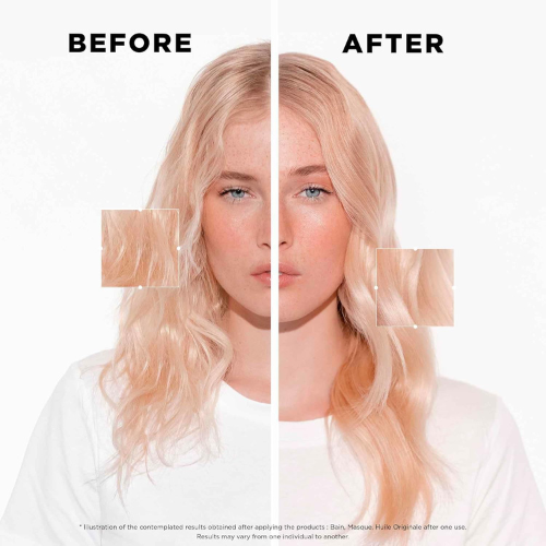 Kérastase Elixir Ultime L’huile Original Shine-Enhancing Oil is a all-star leave-in hair oil, it provides deep nutrition to dull hair with heat protection for up to 230 degree celsius. It seals split ends and smooths the hair fiber for long-lasting frizz control. Hair is instantly vivified through 48 hours of visibly intense shine. Infused with an exceptional blend of floral scents with violet leaf, freesia and mandarin, woody scents with musk extract. This oil delivers a sensorial caress while melting into hair.