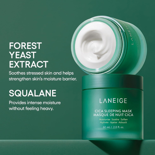 Laneige cica sleeping mask is a skin barrier strengthening mask, helps to improve the skin’s natural strength to create healthy skin that withstands external irritation with the natural growth effect of powerful cica ingredient forest yeast during the sleeping golden time. An overnight replenishing mask that delivers intense moisture to help soothe redness. Through intensive nourishment and hydrating overnight when the skin repairs best, it takes care of skin damaged from dryness. Hypoallergenic 9-free formula provides soothing comfort to the skin. Formulated without parabens, phthalates, mineral oil, animal based ingredient. Size: 60 ml.