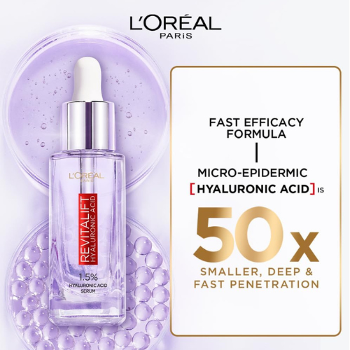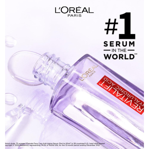 THE #1 Face Serum In the World* does what it says! The L’Oreal Paris Revitalift Hyaluronic Acid Serum with 1.5% Hyaluron has micro hyaluronic acid for deeper penetration. It intense hydrates and reduces fine lines by -60%*. With this lightweight and non-sticky serum, get visibly youthful skin! Dermatologically tested, it is suitable for all skin types and can be used daily. This face serum for women is paraben- free, fragrance-free & alcohol-free. And suitable for all skin types, including sensitive skin. For best results, use the hyaluronic acid cleanser follow by this serum followed by the hyaluronic acid plumping cream morning and night. Disclaimers: n°1 sell – out sales volume and value, based on nielseniq rms data for the female face care anti-aging serum category, total retail market, 23 countries, 75% of world gni, jan 2021 to dec 21 (copyright © 2021, nielseniq)” **basis instrumental test