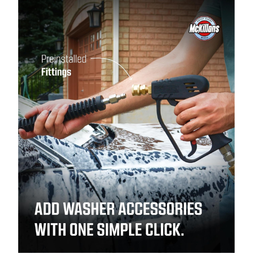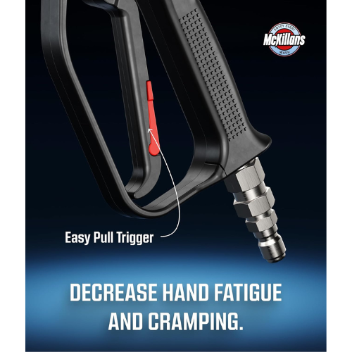 The McKillans Pressure Washer Gun with Swivel is the perfect upgrade for your power washer. The pressure washer short gun makes the gun easy to handle and maneuver. Stop using the long, leaky, and cheap stock gun that comes with your power washer, and upgrade to a quality gun. The small design makes it perfect to use with the foam cannon! Specs: 3000 PSI and 2.6 GPM. Great Father’s day gift from son, daughter or wife. Perfect present for dad.