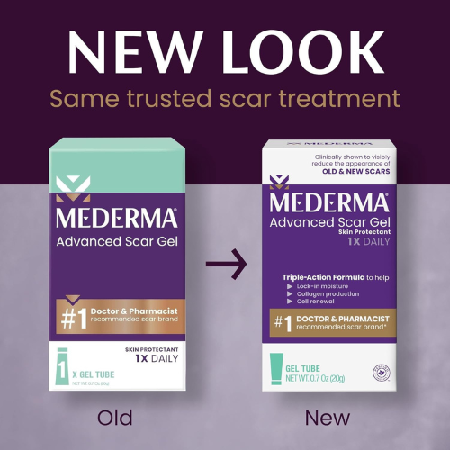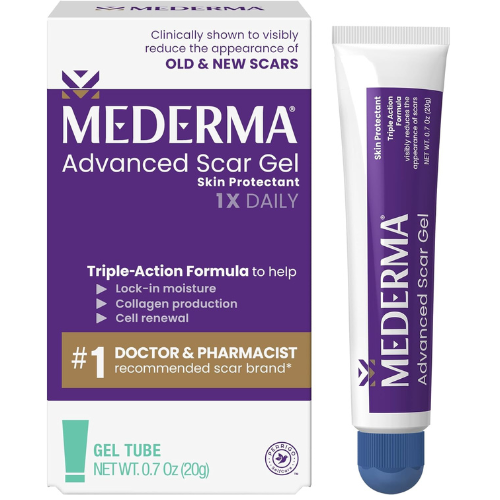 Reduce the appearance of old and new scars with Advanced Scar Gel from Mederma. This effective scar treatment is clinically shown to improve the redness, texture and overall appearance of scars from acne, surgery, burns and injury. Featuring a unique triple action formula, this scar therapy gel penetrates beneath the surface of the skin to seal in moisture, to help aid in the formation of collagen and to help renew skin cells. Apply Mederma scar gel as needed to see a difference in your normal, pockmarks, ice pick scars and acne scars. In just 14 days, you can visibly reduce the appearance of acne scars with this 1x daily topical. Mederma is the #1 recommended brand of scar treatments among Doctors, Pharmacists, Pediatricians, Dermatologists and Plastic Surgeons (Of U.S. physicians and pharmacists surveyed by an independent market research firm). Care for your wounds and help fade your scars with Mederma.