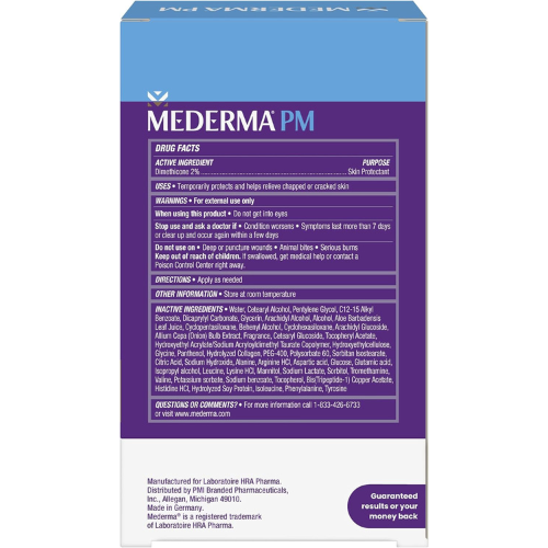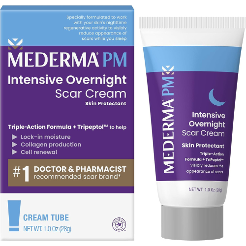 Visibly reduce the appearance of scars while you sleep with Mederma PM Intensive Overnight Scar Cream. Simply apply as needed at night to scars from injury, surgery, acne or burns. See noticeable results in as little as 14 days. This intensive nighttime scar treatment cream is clinically shown to improve the color, texture and overall appearance of scars, helping them appear softer, smoother, smaller and less visible. During sleep our bodies work harder to reverse the skin damage caused during the day, repairing and regenerating skin cells at a faster rate. Mederma PM is specially formulated to complement this nighttime regenerative activity with Tripeptol, a skin nourishing complex with peptides, collagen, and antioxidants to promote healthy looking skin and to help fight free radical damage. Non-greasy formula. Paraben free. The unique triple action formula penetrates beneath the surface of the skin to lock in moisture, help collagen production and renew skin cells. Mederma is the #1 recommended brand of scar treatments among Doctors, Pharmacists, Pediatricians, Dermatologists and Plastic Surgeons (Of U.S. physicians and pharmacists surveyed by an independent market research firm). Give your skin the benefit of overnight care with Mederma.