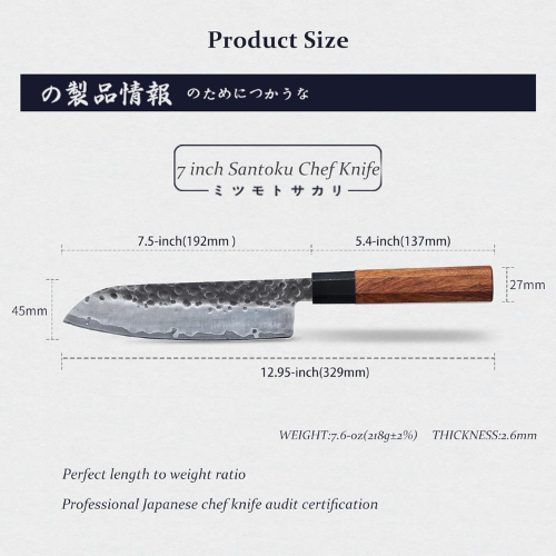 MITSUMOTO SAKARI 7 Inch Chef Knife Santoku Knives, Japanese Knife Series with 3 Layer 9CR18MOV Clad Steel and Rosewood handle