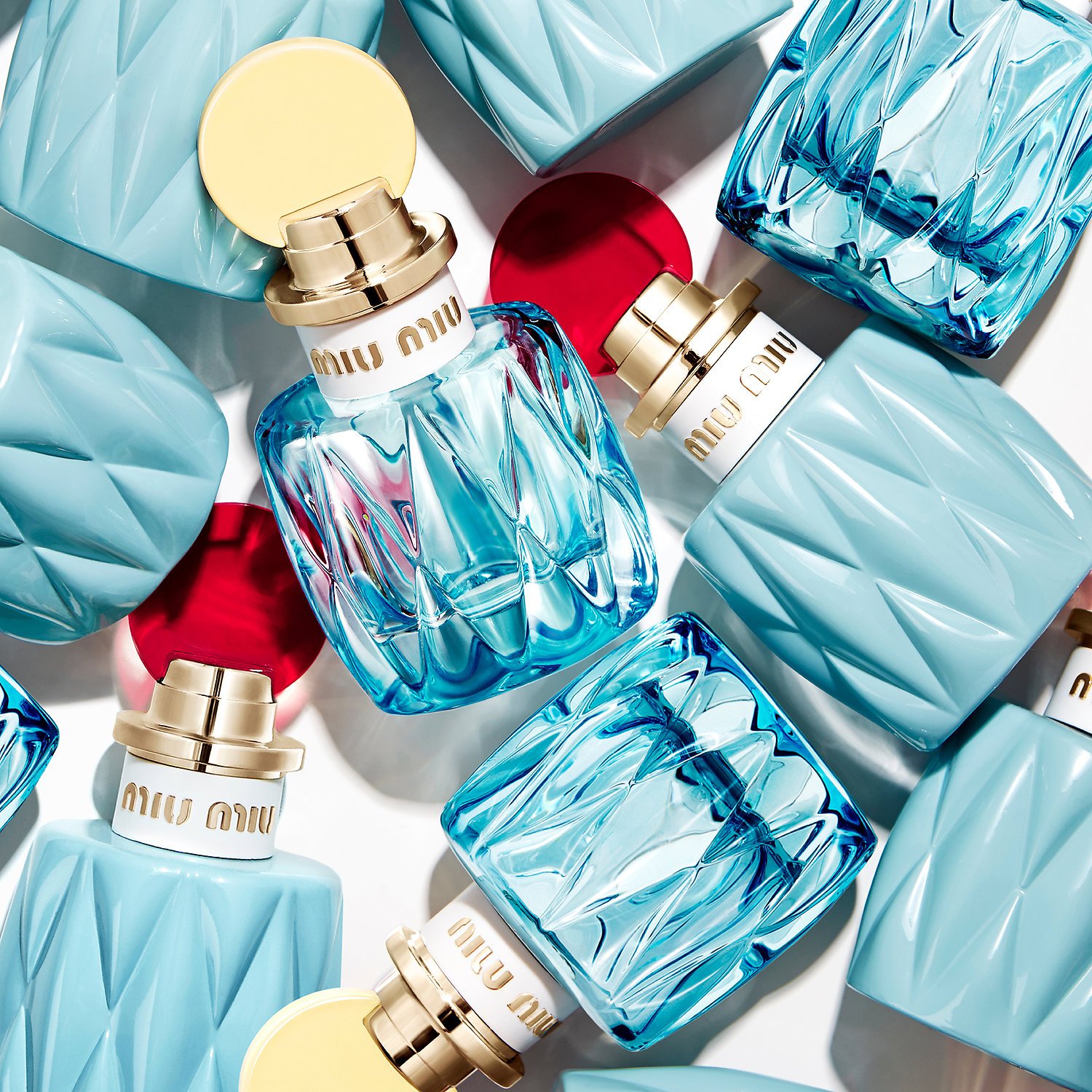 The first fragrance from the fashion house of Miu Miu, Miu Miu Eau de Parfum, was launched in the summer of 2015. Its fresh interpretation comes in February 2017 as Miu Miu L’Eau Bleue. The new edition is announced as a light, fresh and happy scent of spring awakening and the fragrance of new beginnings. Like the original, the new composition was also developed by perfumer Daniela (Roche) Andrier. Spring flowers of lily of the valley in the top go into the heart of green notes and white flowers covered with morning dew. An akigalawood accord, a molecule developed by Givaudan which smells of patchouli, peppery notes and woody flavors of oud, forms the base of the perfume.