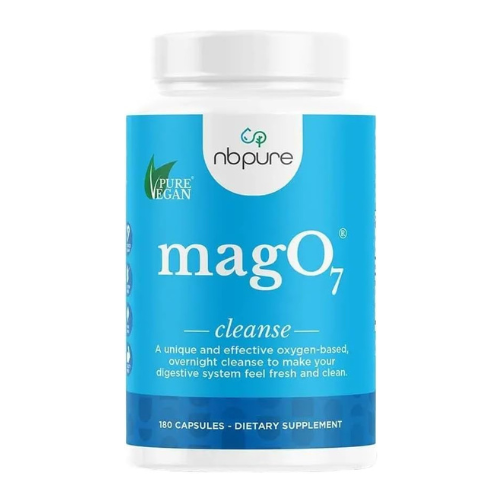 nbpure MagO7 is a natural, oxygen-based colon cleanser designed to support digestive health by promoting gentle bowel movements and reducing bloating. Its unique formula utilizes ozonated magnesium oxide compounds that may help draw water into the intestines and release oxygen over time, aiding in the breakdown of hardened waste without causing cramping or discomfort.