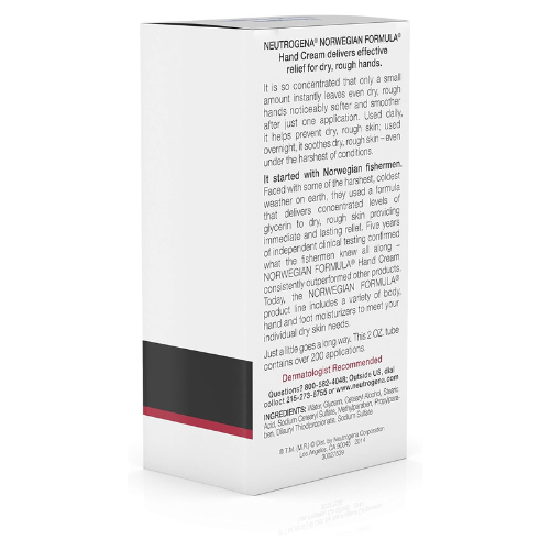 Relieve dry skin effectively with Neutrogena Norwegian Formula Hand Cream. Featuring a highly concentrated Norwegian formula, this moisturizing hand lotion has been clinically proven to provide immediate and lasting relief for dry, rough hands. Rich in glycerin, this intensive hand cream is long-lasting and helps improve the look and feel of dry skin, leaving it noticeably softer and smoother. This hand moisturizing hand lotion is fragrance-free and is so concentrated that only a small amount is needed, with over 200 applications contained in this 2-ounce tube.
