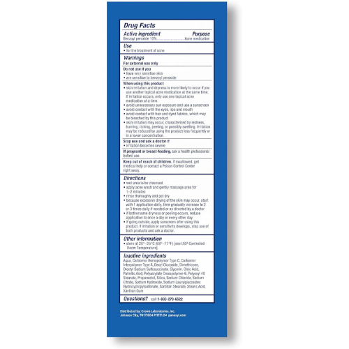 Benzoyl Peroxide (10%) Inactive Ingredients: Carbomer Homopolymer Type C, Carbomer Interpolymer Type A, Decyl Glucoside, Dimethicone, Dioctyl Sodium Sulfosuccinate, Glycerin, Palmitic Acid, Polyacrylate Crosspolymer-6, Polyoxyl 40 Stearate, Propanediol, Purified Water, Silica, Sodium Chloride, Sodium Citrate, Sodium Hydroxide, Sodium Laurylglucosides Hydroxypropylsulfonate, Sorbitan Stearate, Stearic Acid, t-Butyl Alcohol, Xanthan Gum.
