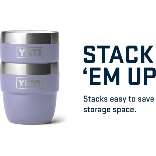 Product description Don’t let the wild get in the way of your coffee ritual. The Rambler 4 oz. Stackable Cups are built for those concentrated doses that help you concentrate on what’s up next. Perfectly sized for single or double espressos and lined with our ultra-sturdy DuraSip Ceramic Lining, you enjoy your espresso without worrying about drops. And with a barista-friendly design they fit under most portafilters and nest in cabinets as easily as they pack up for the campsite