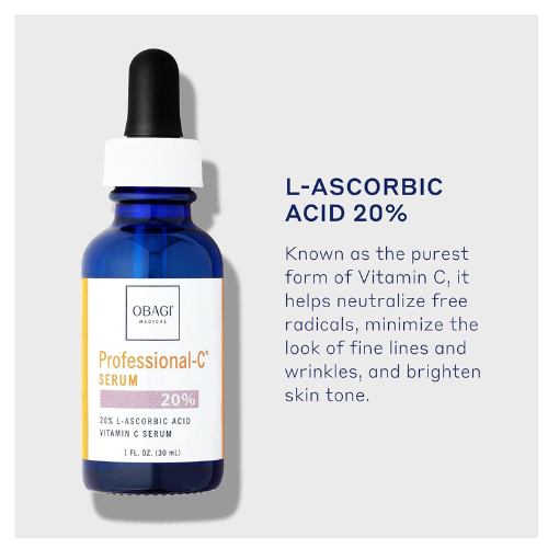 Grant your skin the defence it needs to stay healthy and fit with Obagi Professional-C Serum 20%. It’s designed to visibly reduce the signs of aging, protect your skin from future damage from free radicals, and support healthy skin function.
