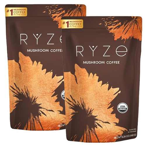 The RYZE Superfoods Mushroom Coffee Starter Kit offers a powerful, health-conscious alternative to traditional coffee, blending premium USDA organic instant coffee with six adaptogenic mushrooms and MCT oil to support overall wellness. This smooth, earthy blend includes functional mushrooms like Lion’s Mane, known for enhancing focus and mental clarity, and Turkey Tail, prized for its immune-boosting properties. Other included mushrooms such as Cordyceps, Reishi, Shiitake, and King Trumpet contribute to balanced energy, improved digestion, and reduced stress without the jitters or crash of regular coffee. With 60 servings per kit, each cup delivers sustained energy, cognitive support, and gut-friendly nutrients in a convenient, easy-to-mix formula—perfect for busy mornings or midday boosts. Whether you’re cutting back on caffeine or upgrading your daily ritual, RYZE Mushroom Coffee supports both your mind and body with every sip.