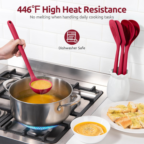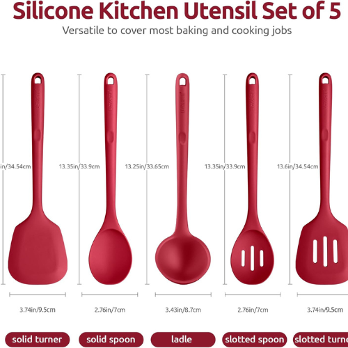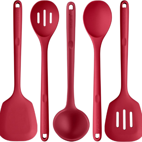 Silicone Kitchen Cooking Utensil Set: U-Taste 600℉ Heat Resistant Long Kitchen Gadgets, BPA Free Non Stick Rubber Cook Accessories For Stir Frying, Serving, Basting, Mixing (5 Pieces, Red)