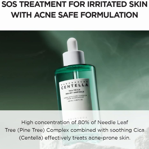 A premium soothing ampoule formula that contains a high content of TEA-TRICA Formula (80%) that helps calm extremely sensitive skin.