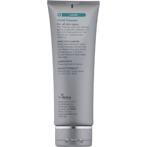 - SkinMedica Facial Cleanser gently removes dirt, oil, makeup and other impurities without causing irritation.